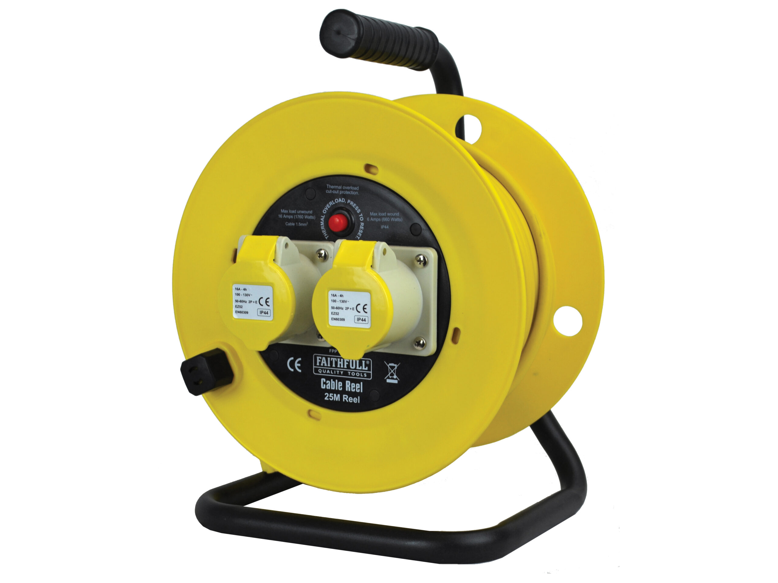 FAITHFULL POWER PLUS Open Drum Cable Reel 110V 16A 2-Socket 25m (2.5mm Cable)