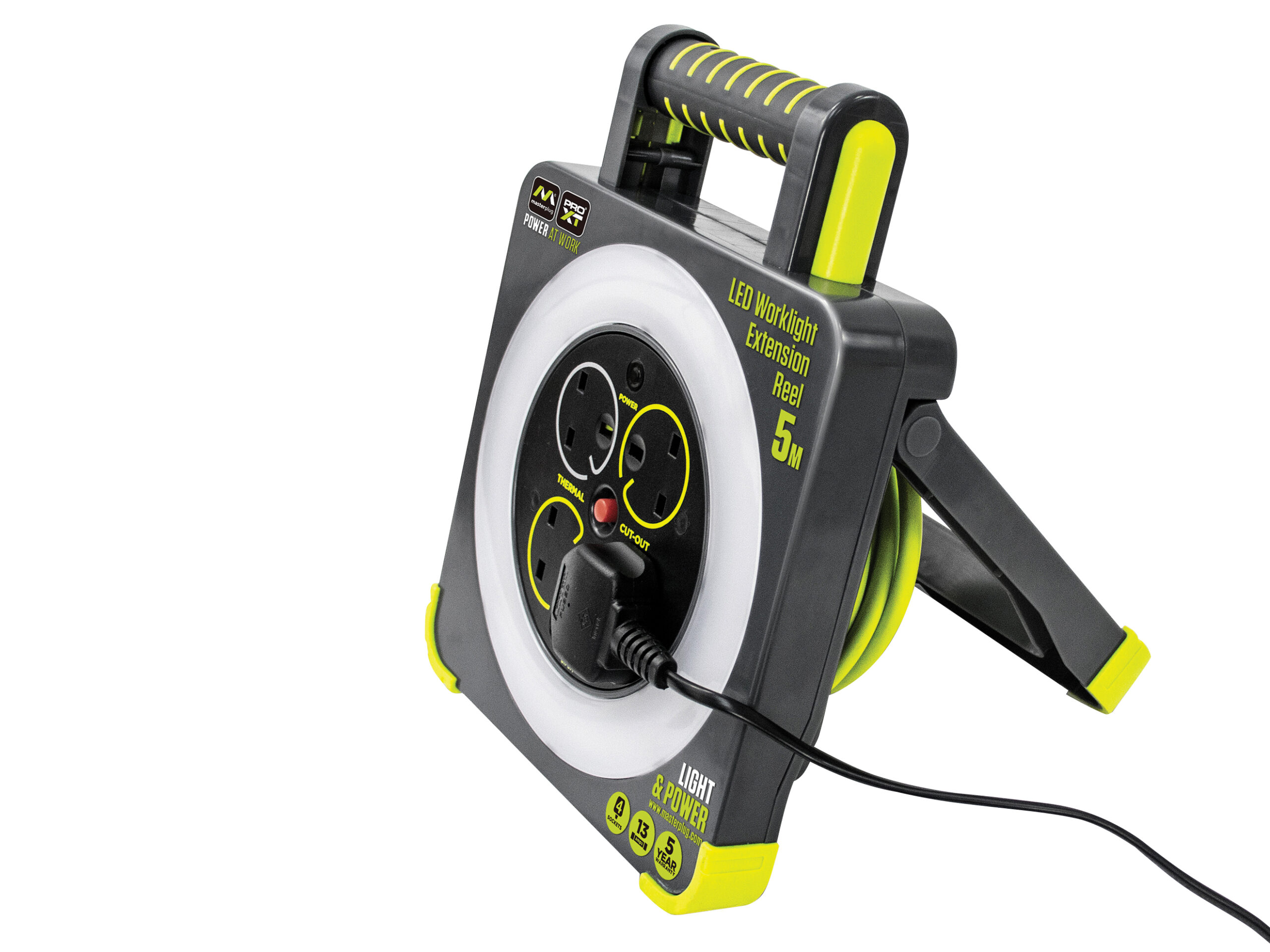 MASTERPLUG Work Light Cable Reel 240V 13A 4-Socket 5m