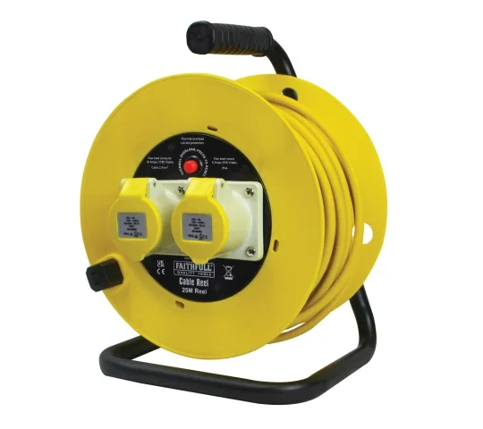 FAITHFULL POWER PLUS Open Drum Cable Reel 240V 13A 2-Socket 25m