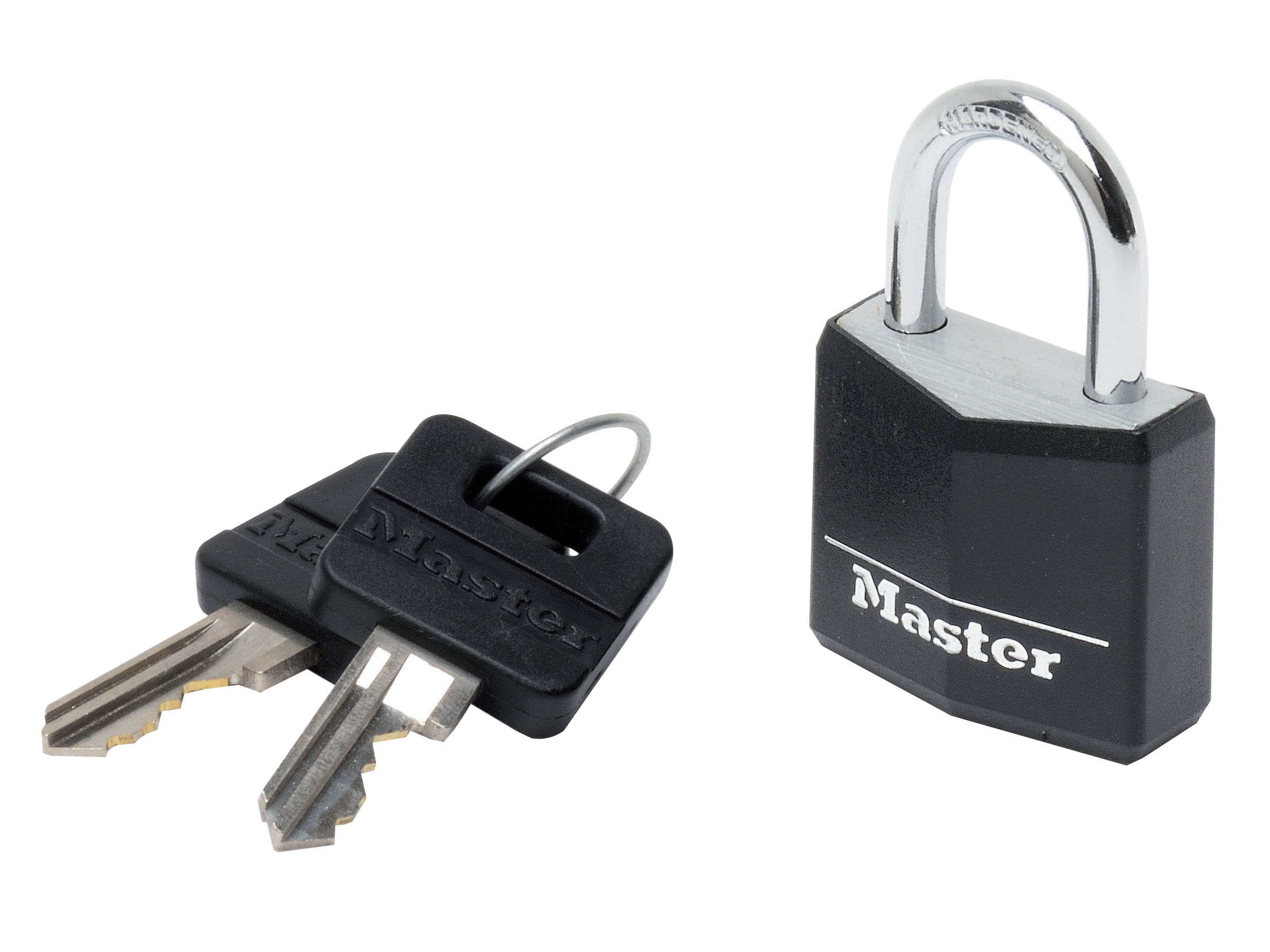£13.52 £11.27 excl. VATMASTER LOCK Aluminium Black Vinyl Cover 30mm Padlock 4-Pin – Keyed Alike x 2
