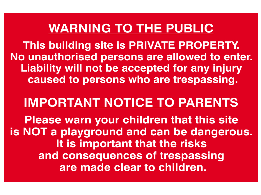 SCAN Building Site Warning To Public And Parents – PVC 600 x 400mm