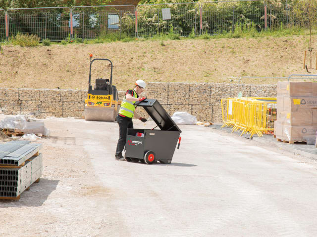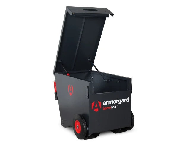 It has a highly secure design with keyed alike 5-lever deadlocks and unique anti-jemmy systems. Durable steel construction with gas struts to assist with the lid opening. Unique SlamStop™ safety stay to keep you safe when reaching into the box or closing the lid. Easy grip, folding handles ensure the barrobox™ is easy to manoeuvre. It also features forklift skids to make transportation by forklift simple.