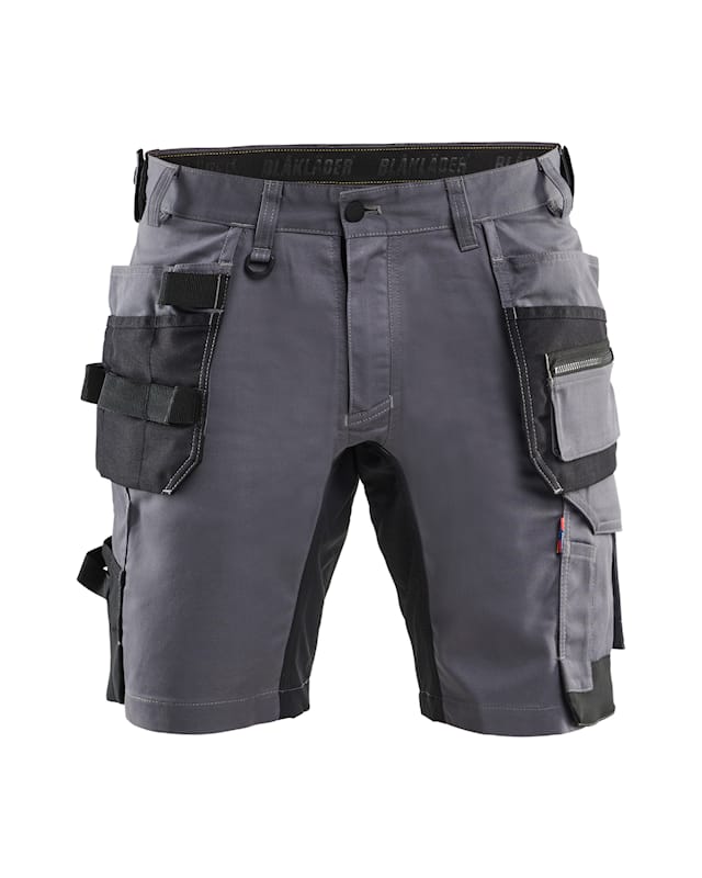The shorts have tool pockets, practical pockets with reinforcement, ruler pocket, front pockets and loop for hammer holder on both the left and right sides.