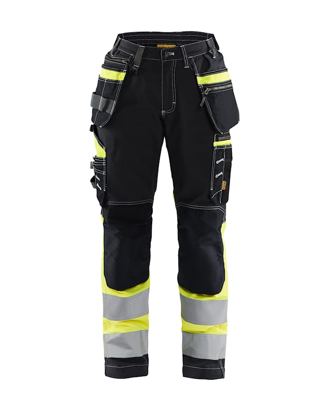 Strong, comfortable and practical hi-vis trousers in 100% cotton with hi-vis sections. These women’s trousers have 4-way stretch panels at the back to keep them feeling extra light and comfortable to wear. Ruler pocket, holster pockets, easy access phone pocket and back pockets reinforced with CORDURA®.