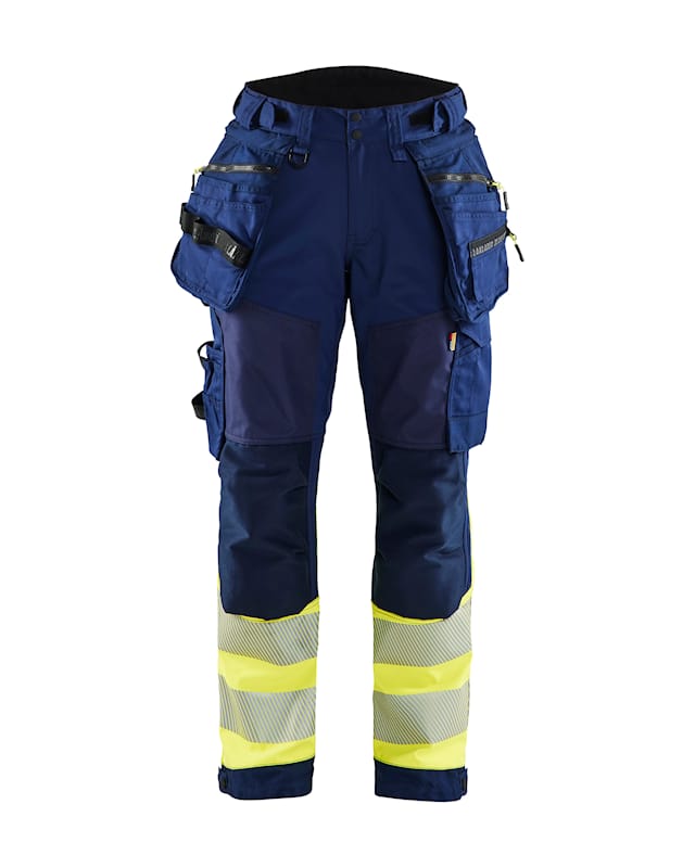 The trousers have advanced details and practical pockets with CORDURA® reinforcement, a bellowed leg pocket, ruler pocket, detachable holster pockets with zips, bellowed back pockets and handy tool holders, such as a loop for a hammer holder.