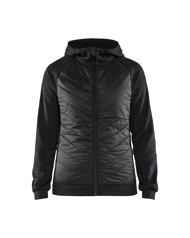 A zip-up sweatshirt designed for the female figure. Works equally well as a jacket or sweater, depending on what you’re doing. This jacket-sweater has a quilted front and is unlined.
