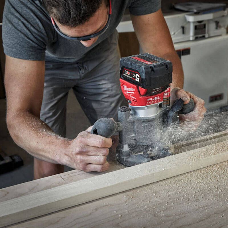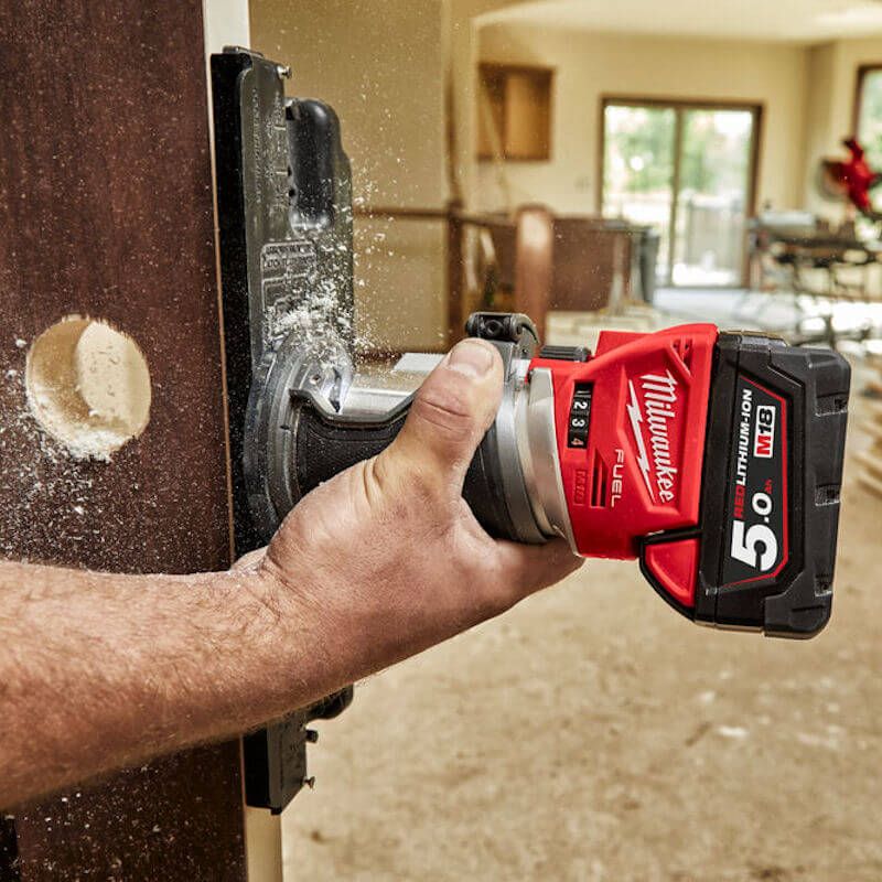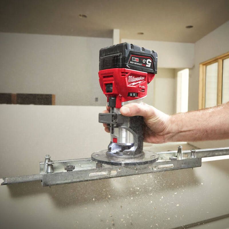 The Milwaukee M18 FTR FUEL™ Trim Router has a POWERSTATE™ brushless motor that delivers the power of AC trim routers, for powerful, smooth cutting. A variable speed dial with 6 speed settings, allows users to adjust the speed. It uses an innovative height adjustment system incorporating a 0.4mm micro adjustment.