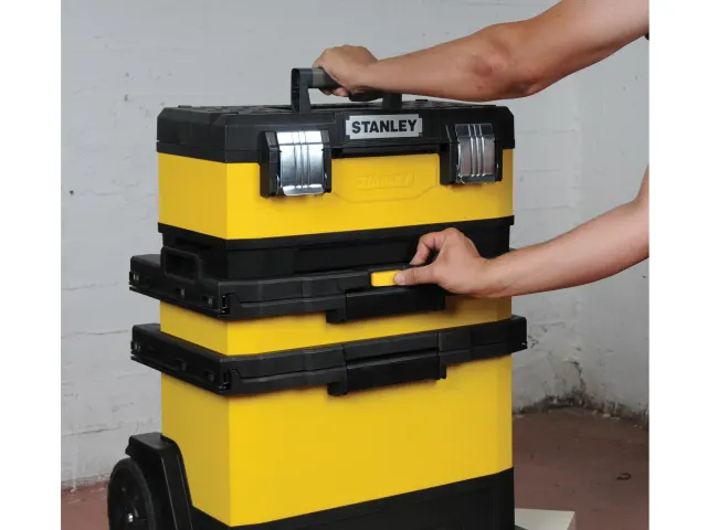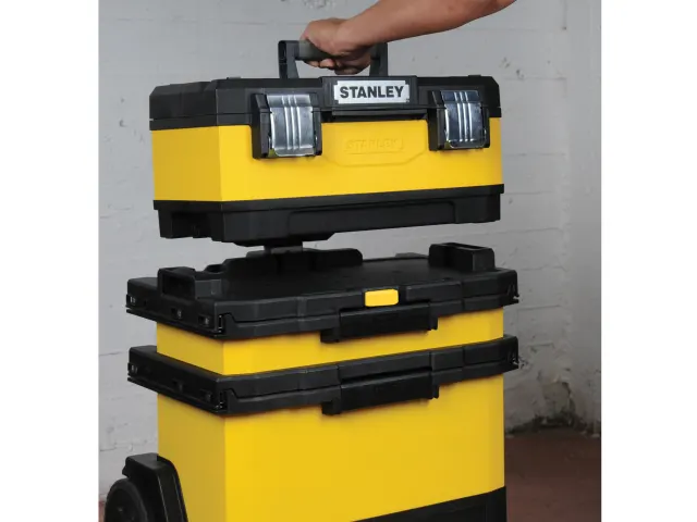 The Stanley 1-95-621 Metal & Plastic Rolling Workshop is the complete mobile solution for large and small tools and accessories.